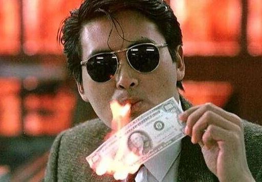 用钱点烟来源电影,发哥1986年「英雄本色」