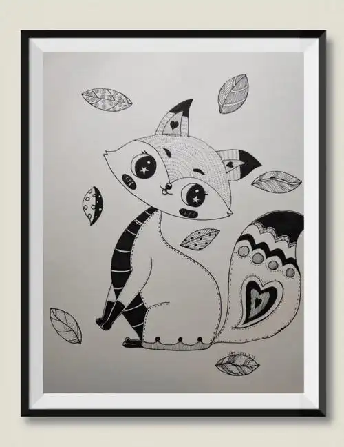 小狐狸#针管笔手绘 #我的绘画日常 #黑白装饰画 #临摹