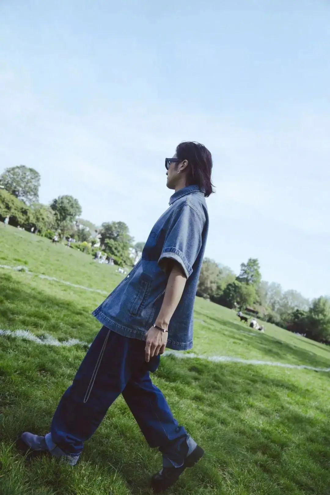 谢霆锋伦敦球场公园照,牛仔穿搭率性利落