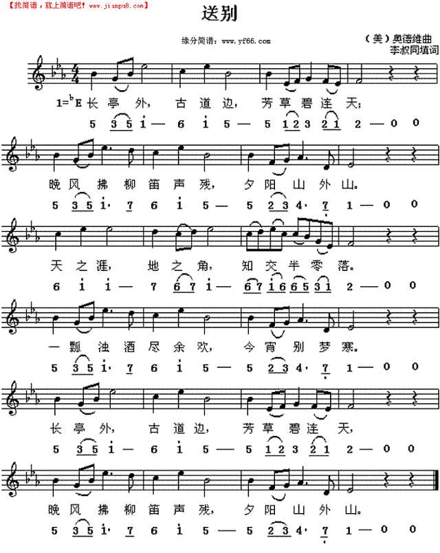 送别(歌词版)五线谱预览1-钢琴谱文件(五线谱,双手简谱,数字谱,midi