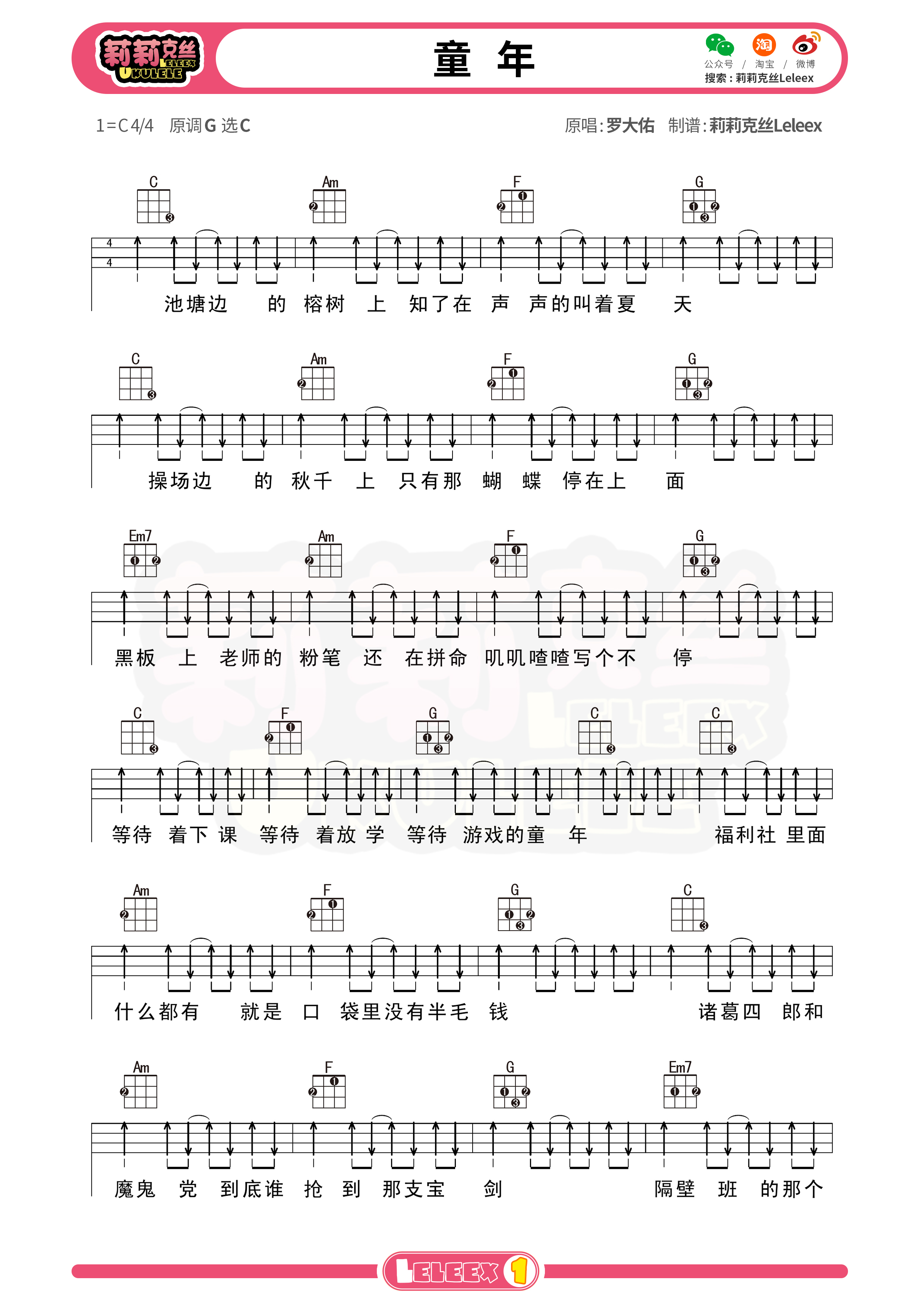 罗大佑《童年》尤克里里谱 - c调尤克里里谱 - 扫弦第1张