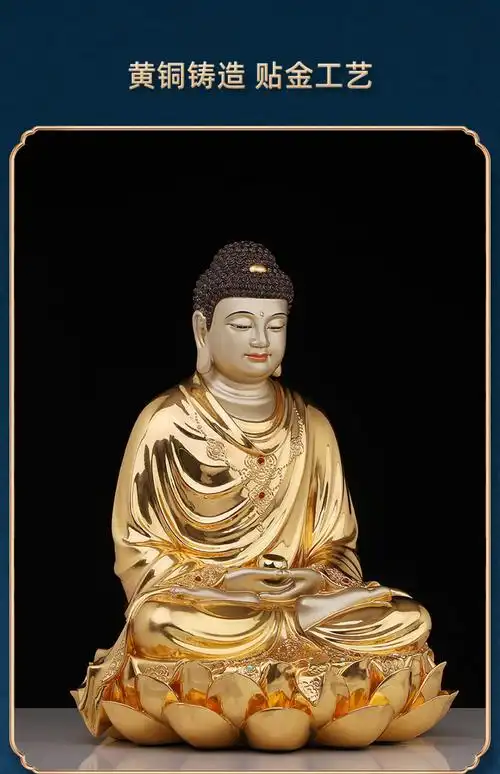 台湾纯铜贴金释迦牟尼佛像家用纯铜阿弥陀佛像释迦悟道佛客厅摆件