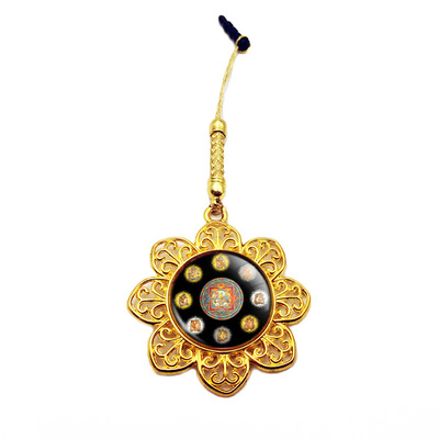 正观三品 唐卡 黄财神咒轮六字真言 纯手绘 招财平安小唐卡吊坠