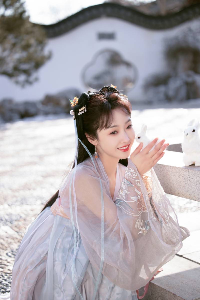 宣璐晒古装照宛如仙子抱兔子笑容甜美温柔端庄