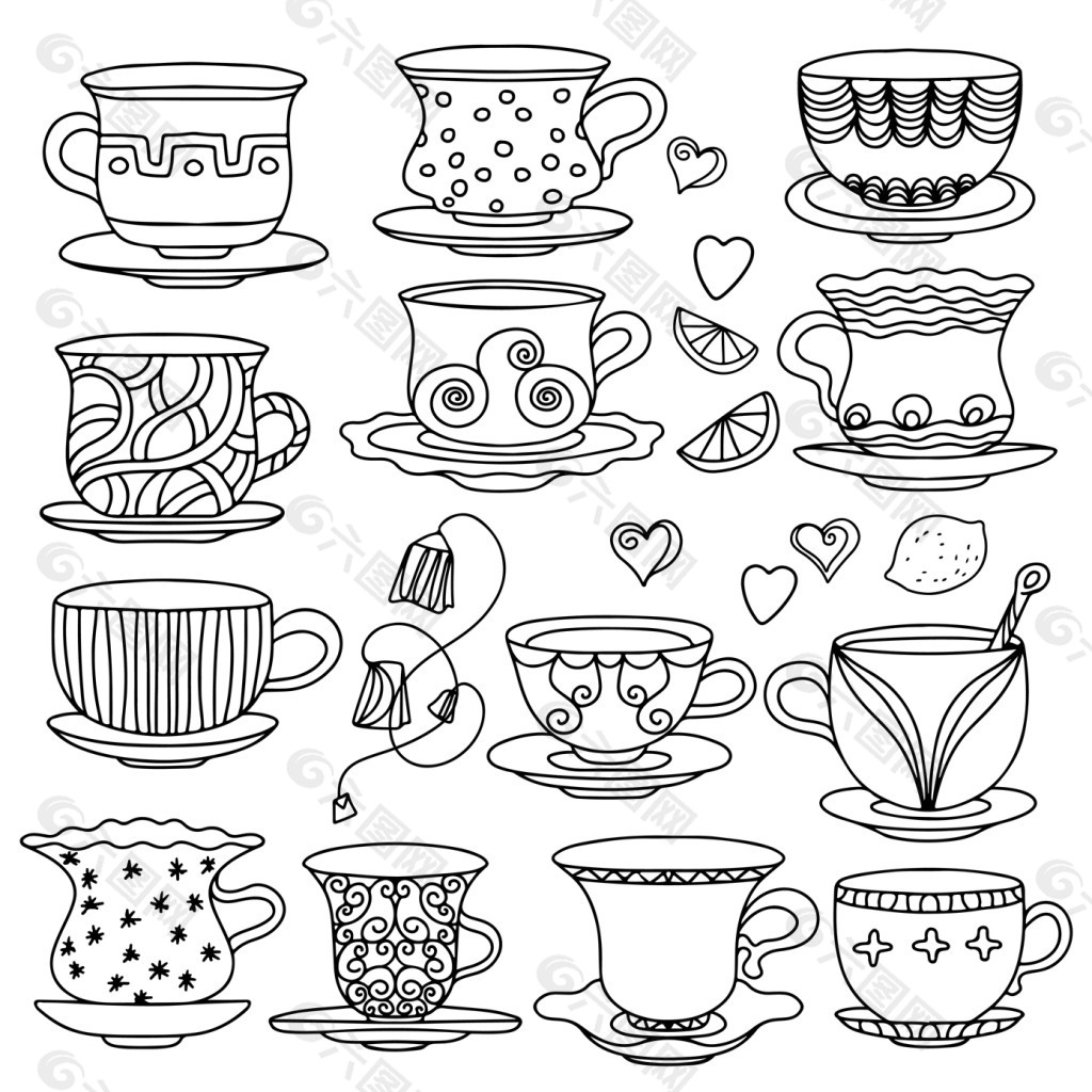手绘的杯子设计元素素材免费下载(图片编号:1013364)-六图网