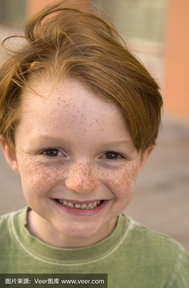 男孩红头发,雀斑,微笑