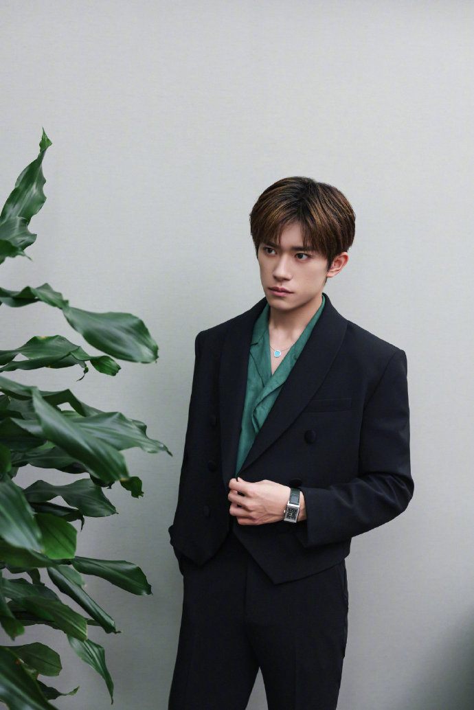 易烊千玺绿色衬衫黑西装造型