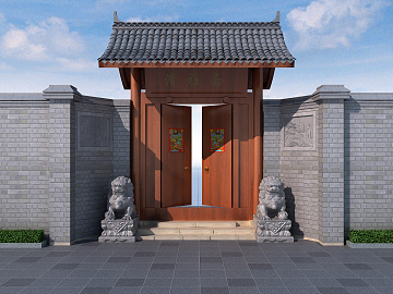 新中式庭院大门中式大门广亮门随墙门赤头砖雕花窗抱鼓石围墙角兽