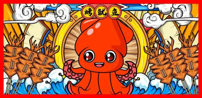 卡通美味烤鱿鱼插画