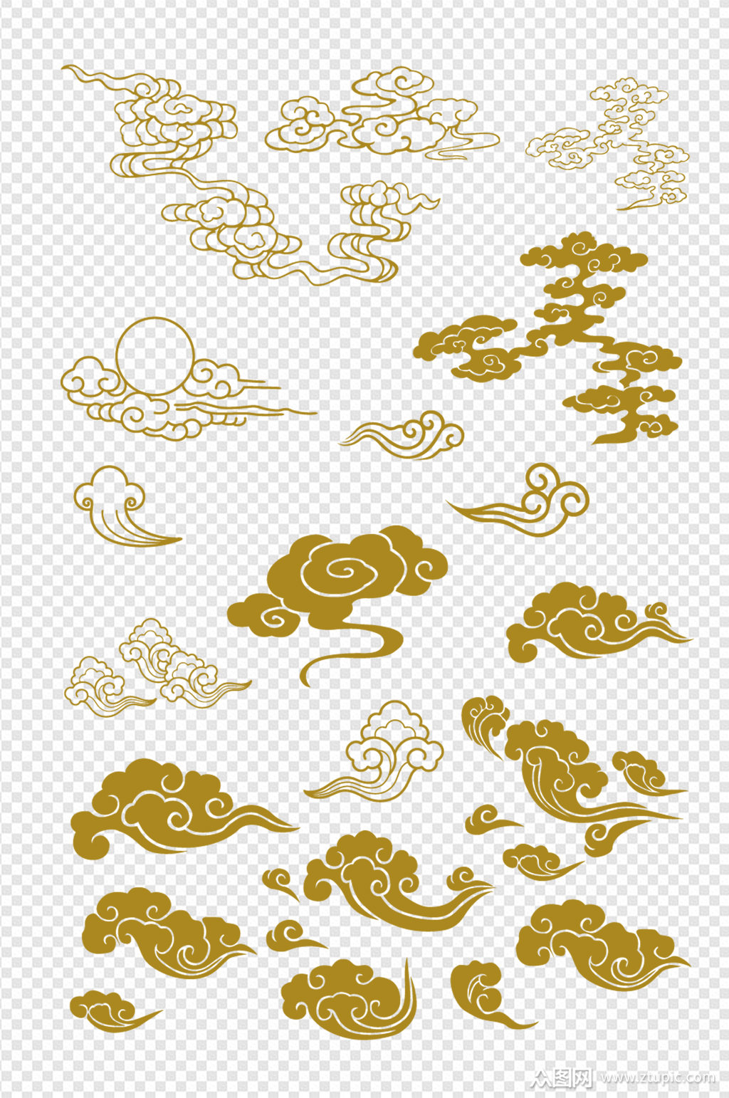 中国风中式传统祥云图案国潮古风边框云纹装饰元素png免抠素材图 - 菜