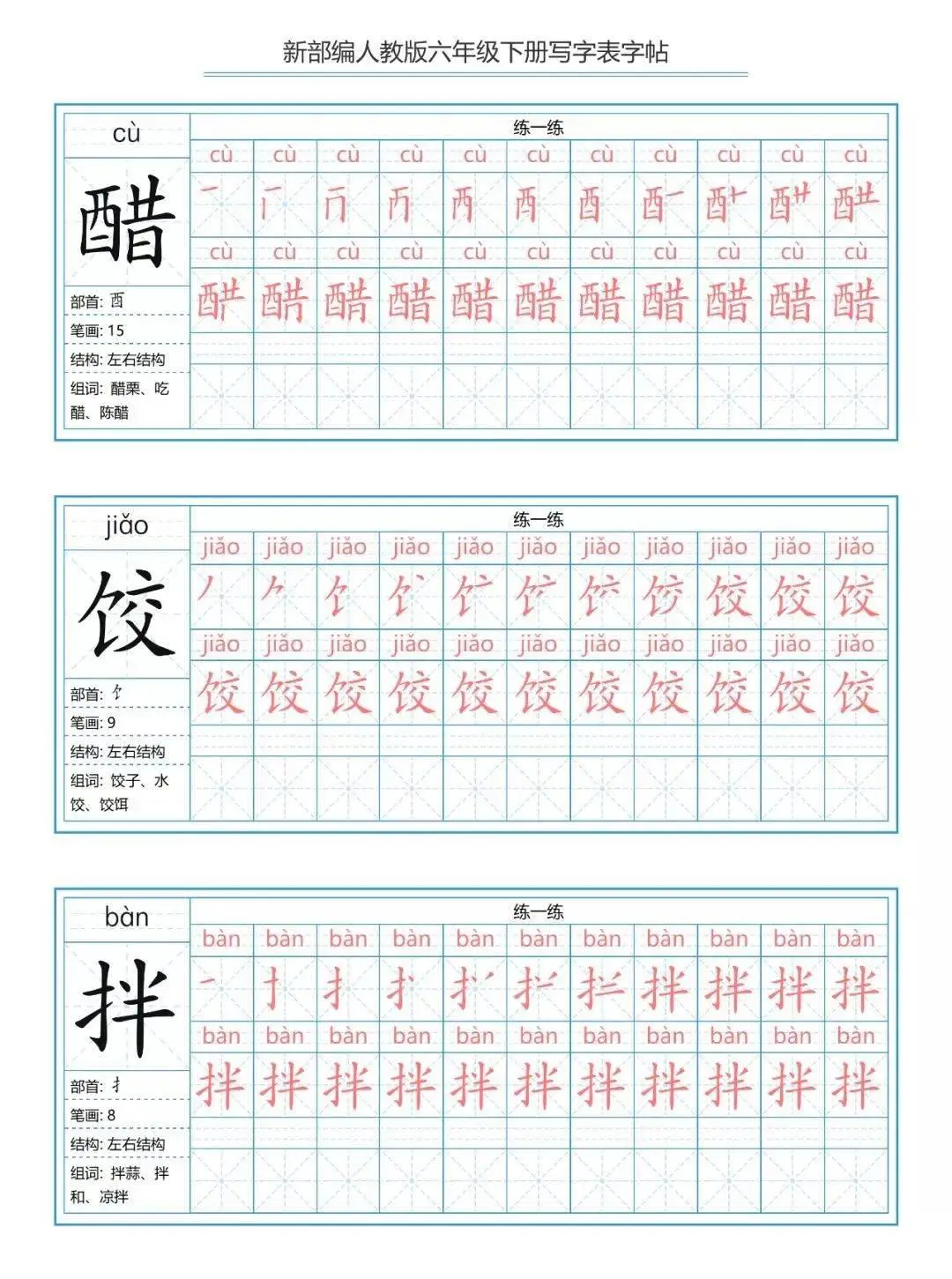【寒假预习】统编版语文1-6年级(下)生字练字帖(带,,)