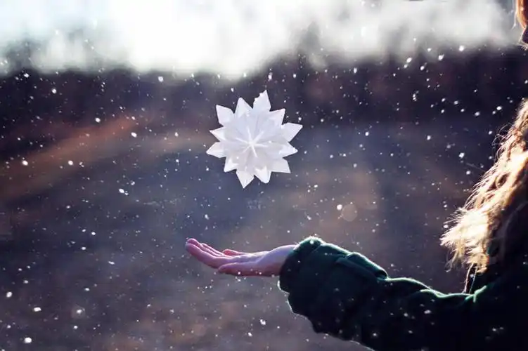 女人手捧雪花,圣诞装饰装饰理念