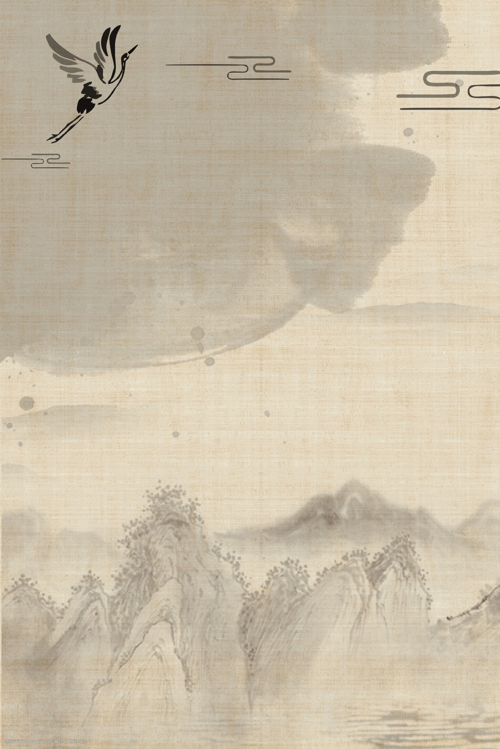 中国风水墨淡雅山水花鸟海报背景图片模板素材免费下载,图片编号61428