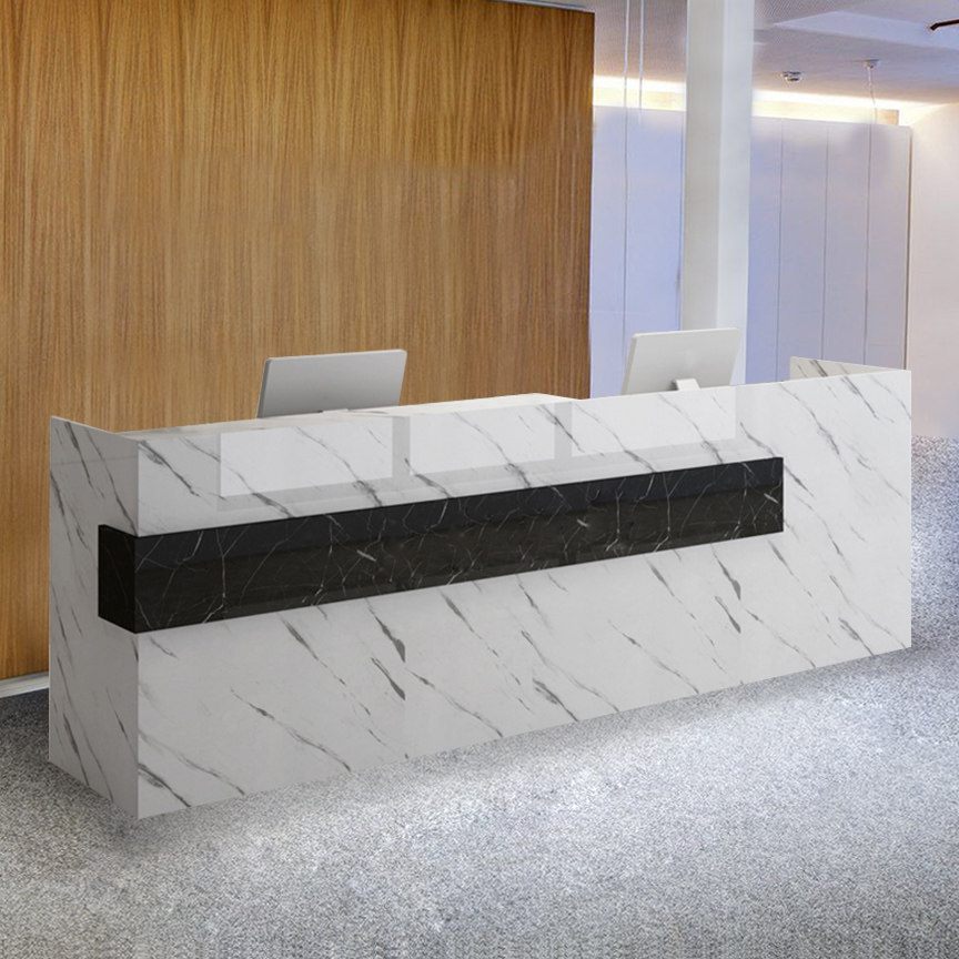 仿大理石前台接待台简约现代吧台桌办公桌公司咨询导购台纹收银台
