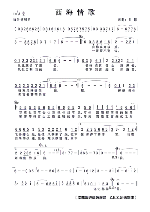 西海情歌(草原歌曲100首)简谱_简谱大全_zzmao简谱网