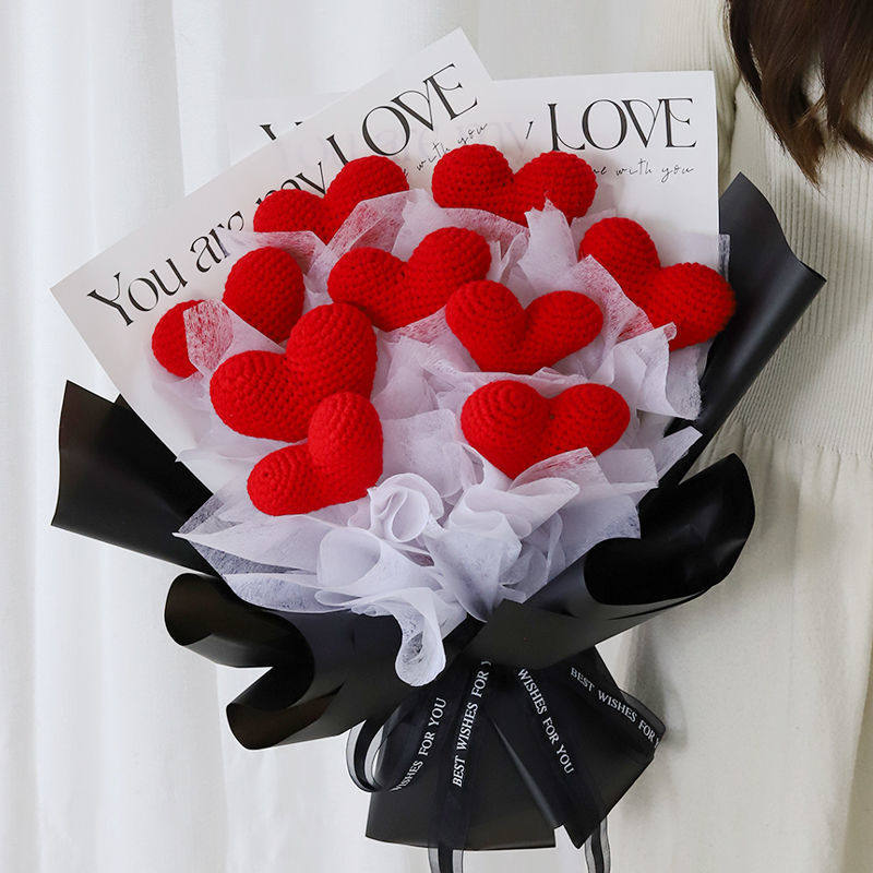 心形手工编织花束diy包装纸材料包套装毛线爱心花送女友闺蜜礼物