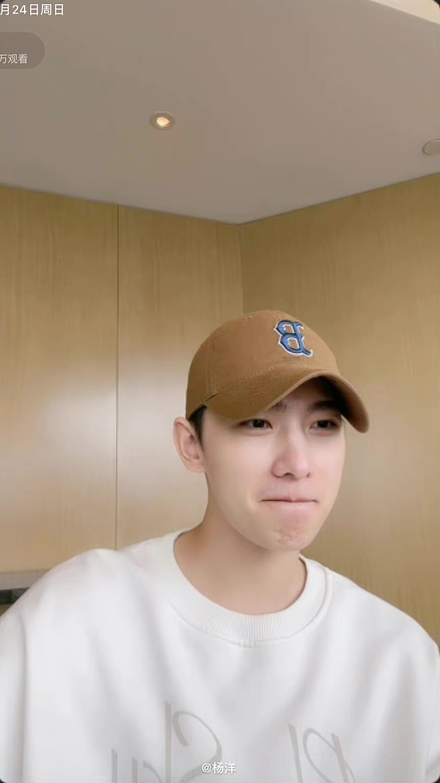 杨洋素颜直播状态太好了白色卫衣戴棒球帽笑起来少年感十足