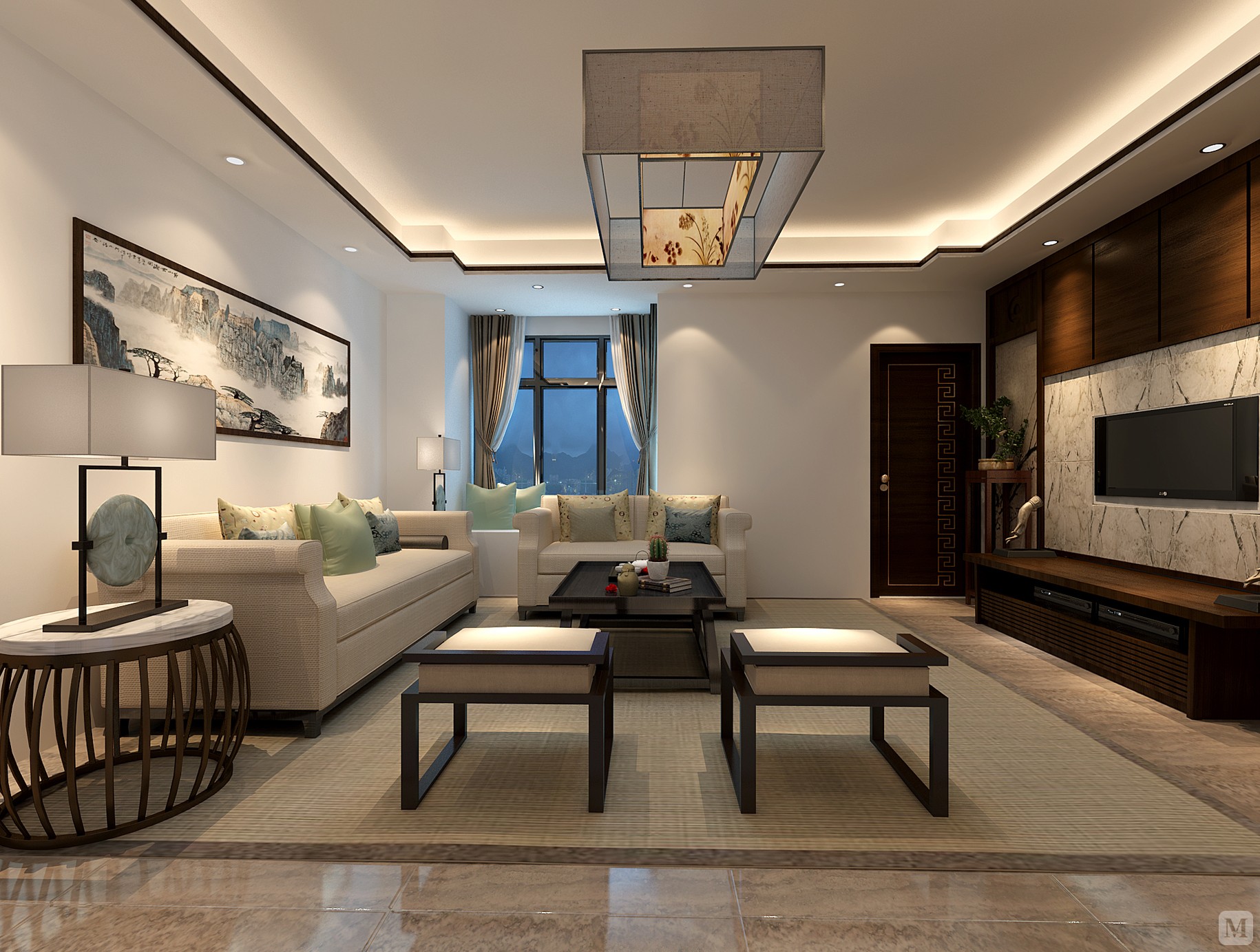 优雅61平中式复式客厅效果图欣赏客厅吊顶2图中式现代客厅设计图片