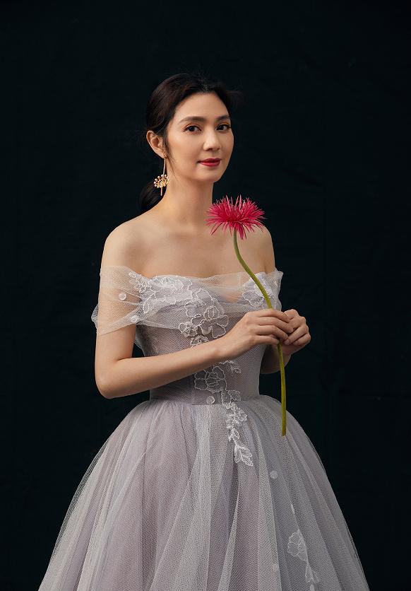 洪欣是真正的时光美人穿白色蛋糕裙秀身材不装嫩也显年轻
