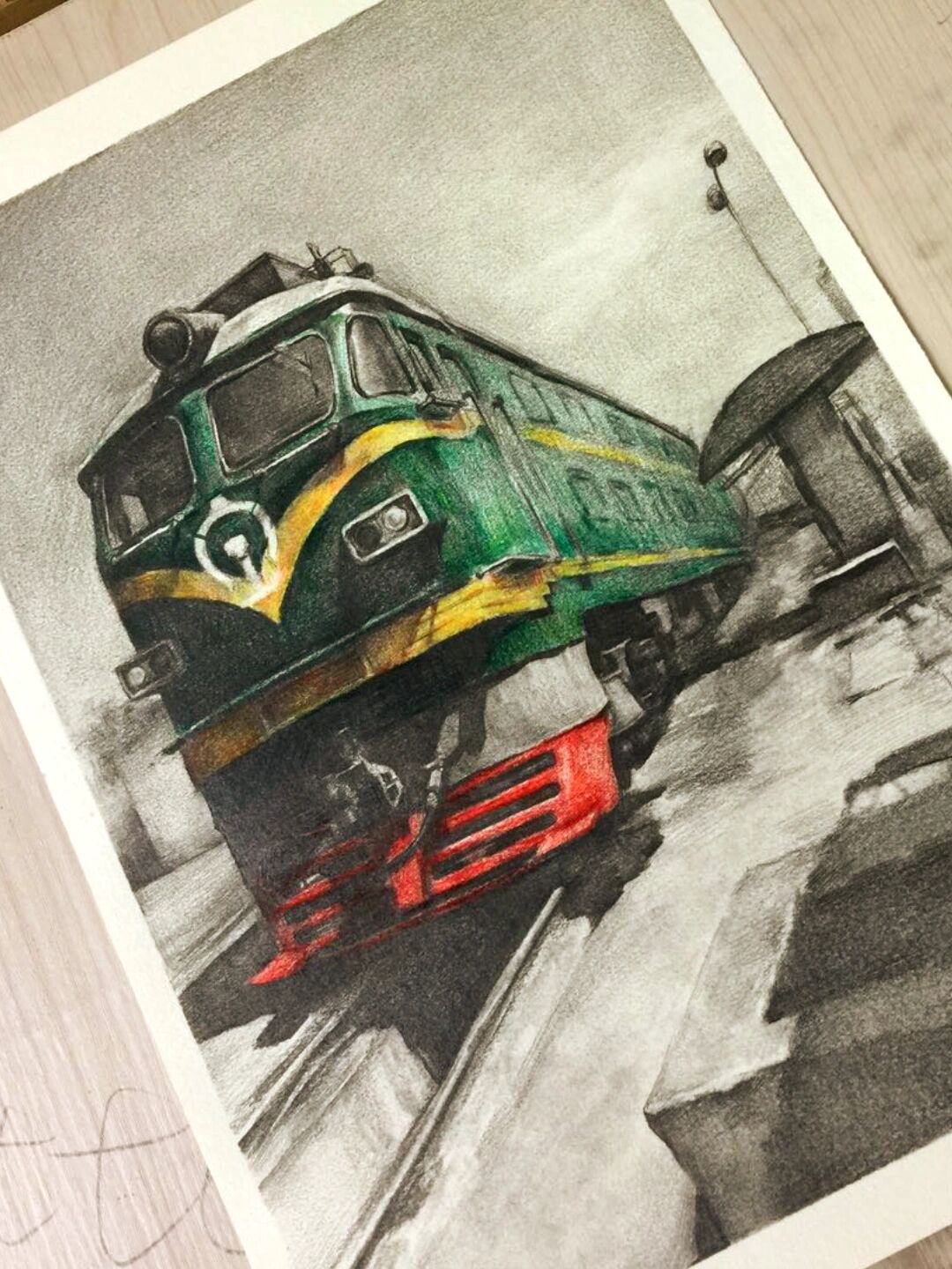 彩铅手绘731596黄桷坪的绿皮火车04