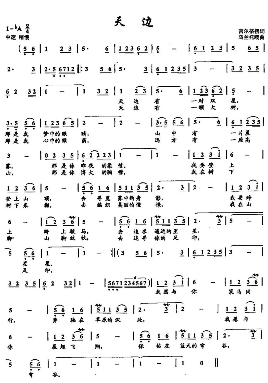天边简谱-廖昌永演唱-吉尔格楞/乌兰托嘎词曲1