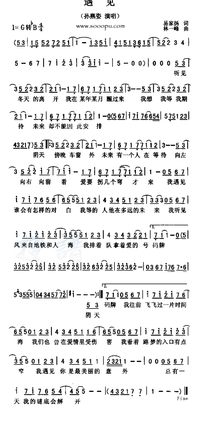 简谱孙燕姿遇见