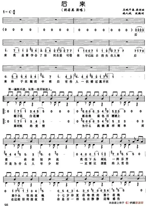 后来(架子鼓,鼓谱 简谱 歌词)(1)_后来(架子鼓,鼓谱 简谱 歌词)玉城
