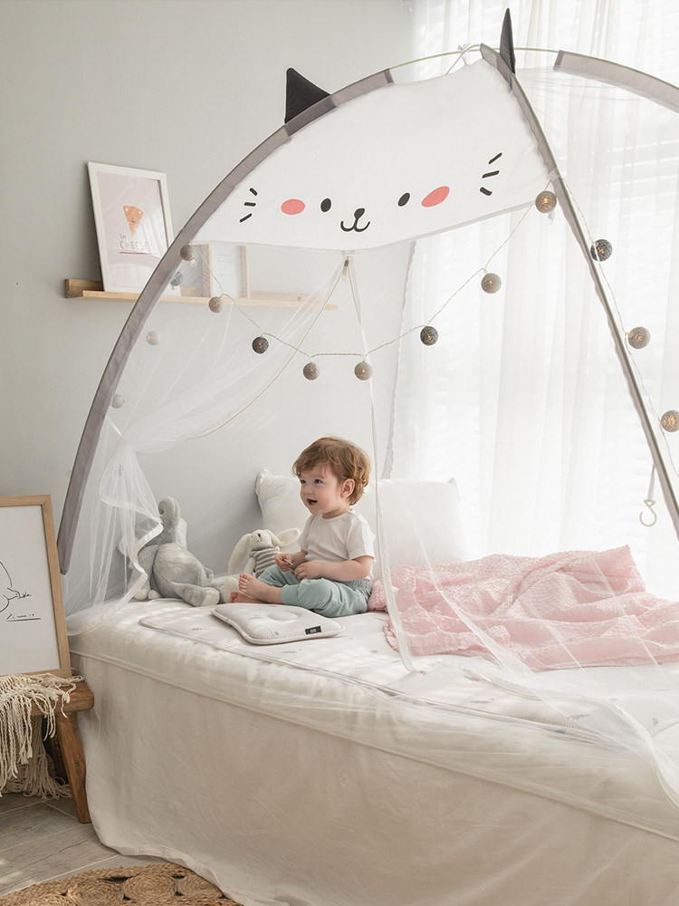 卡通免安装儿童蚊帐三z开门蒙古包可折叠婴儿拼床帐子可爱加密防