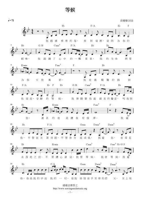 等候_歌谱网歌谱 christ简谱网 歌谱网 诗歌下载五线谱 钢琴谱 圣歌