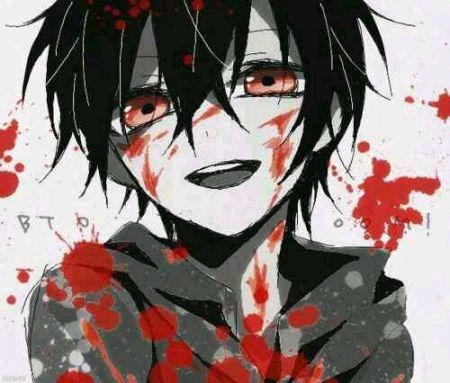 黑暗系动漫男生图片,要有背景,人物最好是黑头发蓝眼睛,当然有血更好