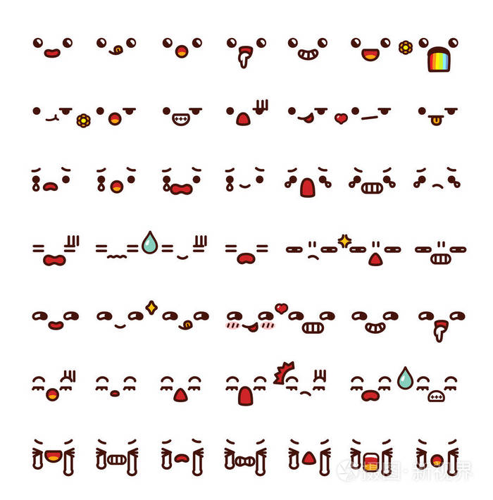 可爱可爱表情符号表情涂鸦卡通脸集合 s