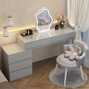 批量定制led智能灯梳妆台简约ins梳妆桌凳收纳柜一体梳妆台免漆板