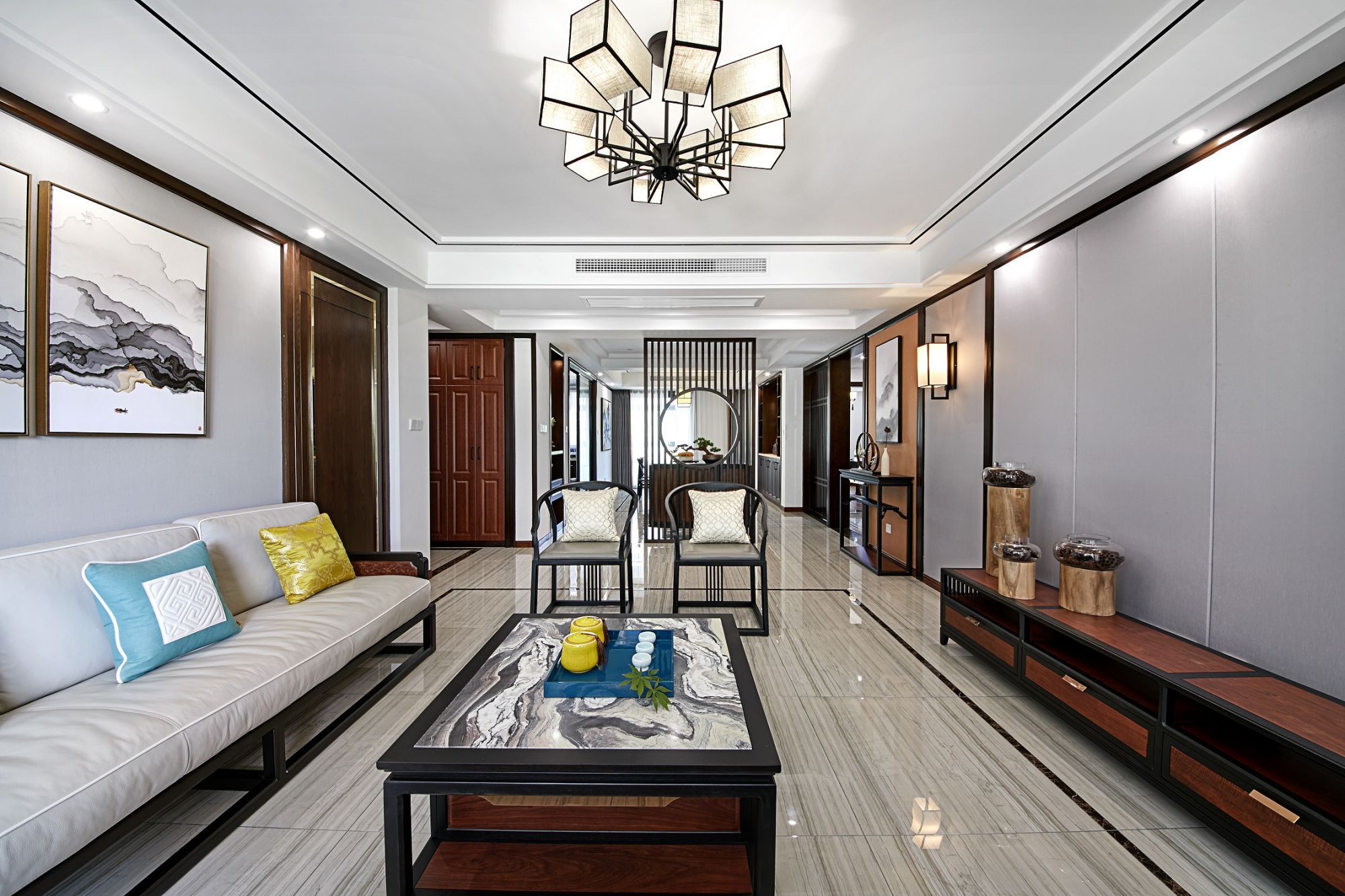 轻奢新中式客厅装修设计效果图