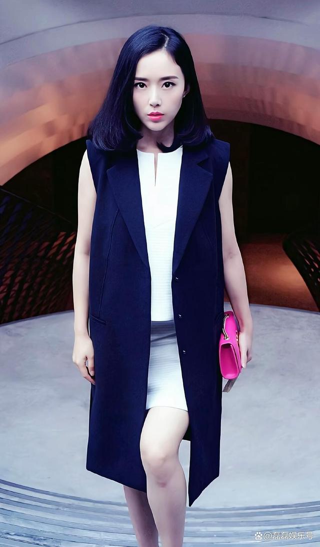 颜丹晨感觉依然年轻貌美,气质出众,穿西装更显优雅