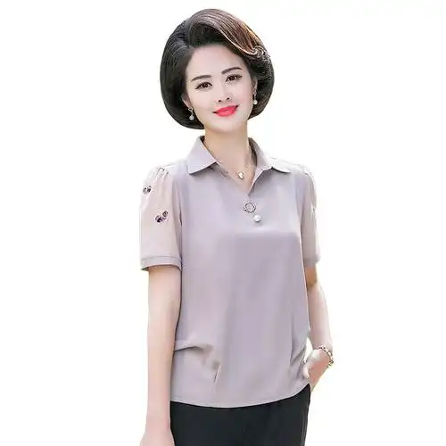 妈妈夏装翻领短袖小衫40岁50岁中老年女装清凉遮肚印花t恤衫 - 抖音