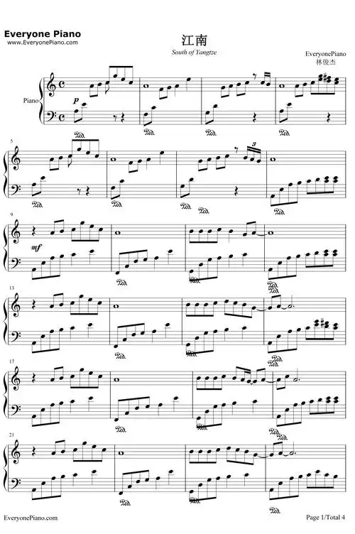 江南-林俊杰-钢琴谱 五线谱 乐谱 高清4页