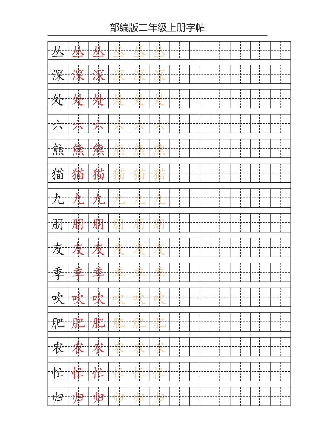 部编版二年级上册写字表字帖描红练习doc16页