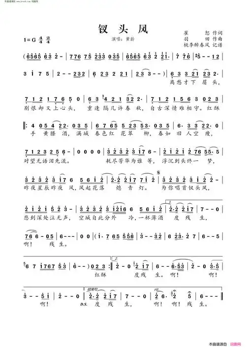 钗头凤简谱-黄龄演唱-崔恕/羽田词曲1