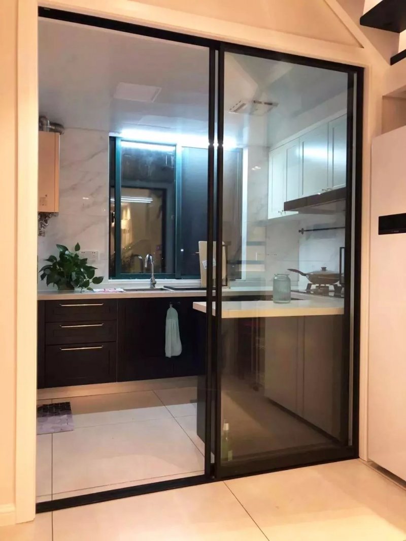 厨房门得选好除了黑框,白框的推拉门对于一些时尚优雅的装修来说,也是