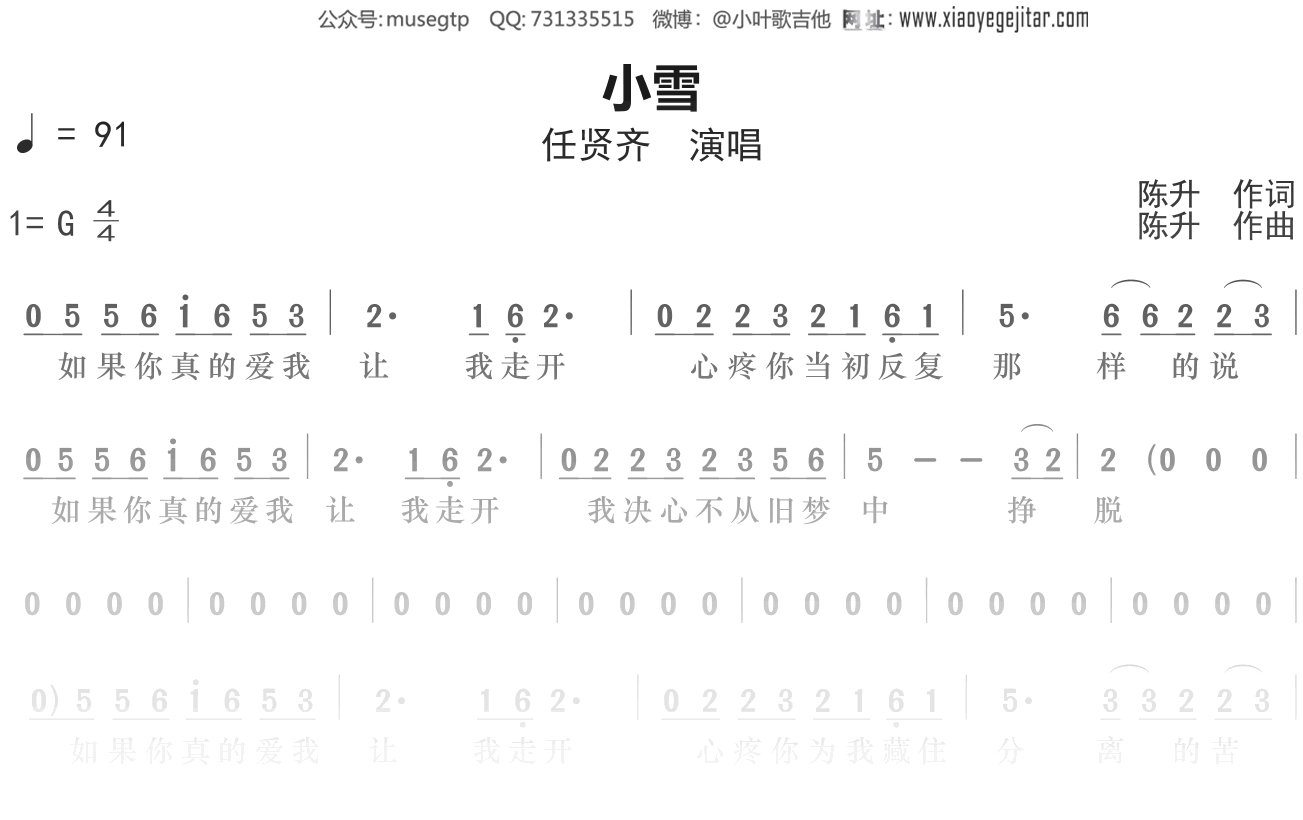 任贤齐《小雪》简谱g调简单音独奏谱
