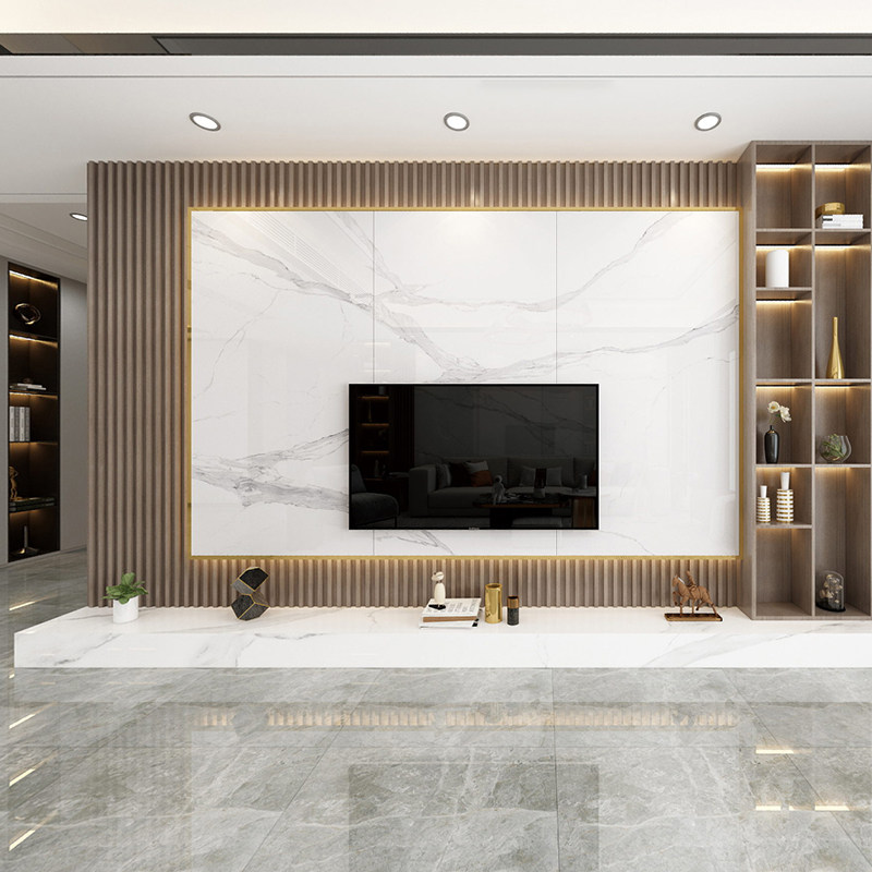 画凰岩板悬空电视背景墙实木格栅大理石瓷砖现代简约客厅影视墙2021款