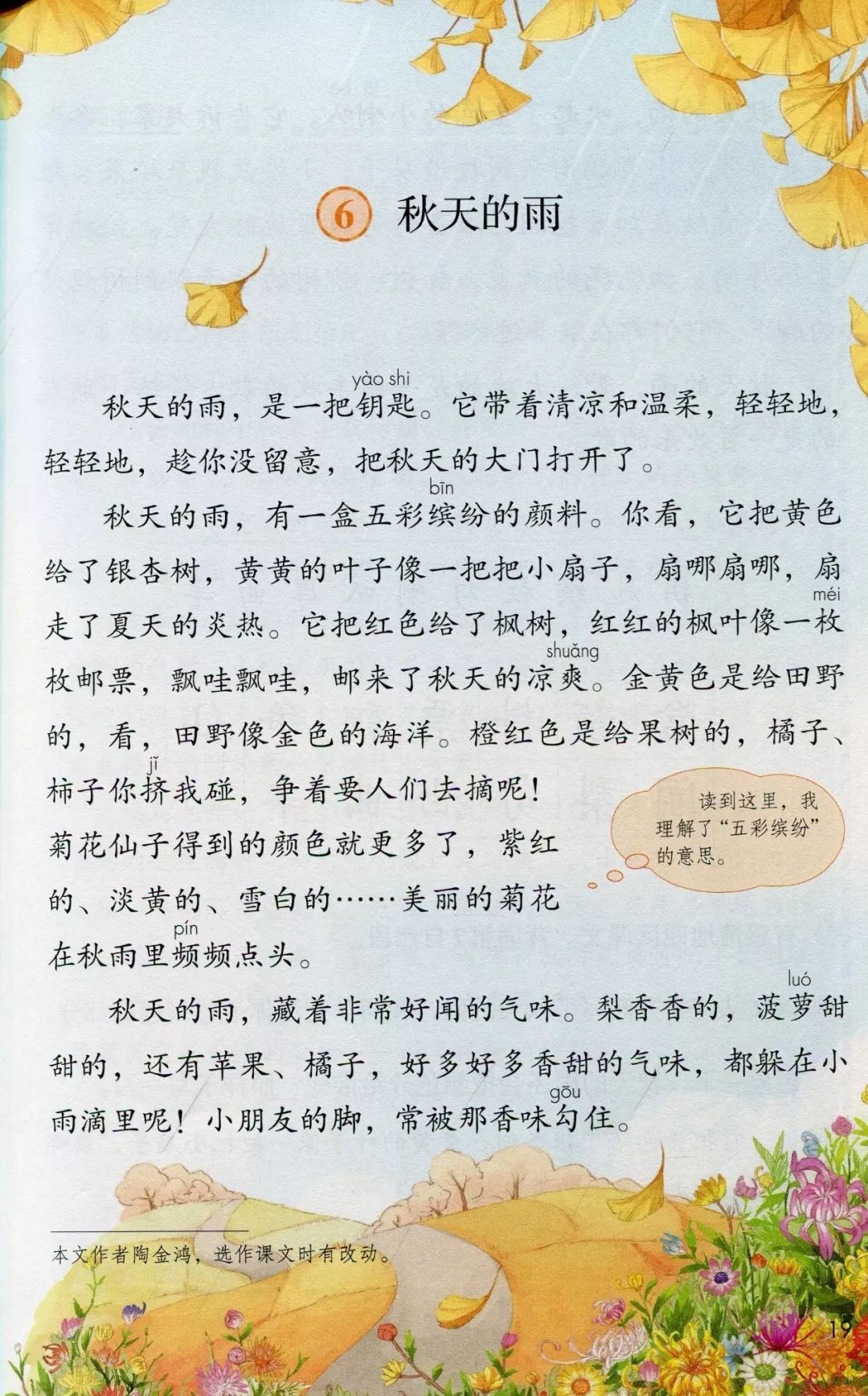 三年级第6课学习,一起走进《秋天的雨》去看看,去闻闻,去听听
