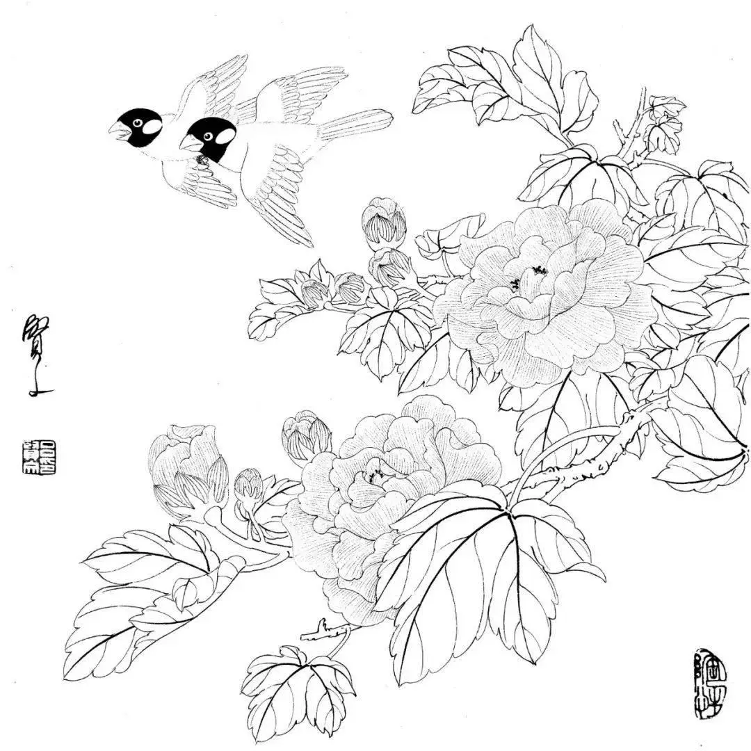 精美花鸟白描20幅,赶紧收藏吧!