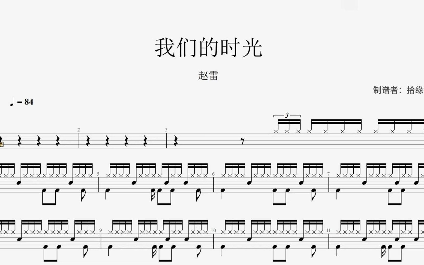 赵雷《我们的时光》架子鼓动态鼓谱