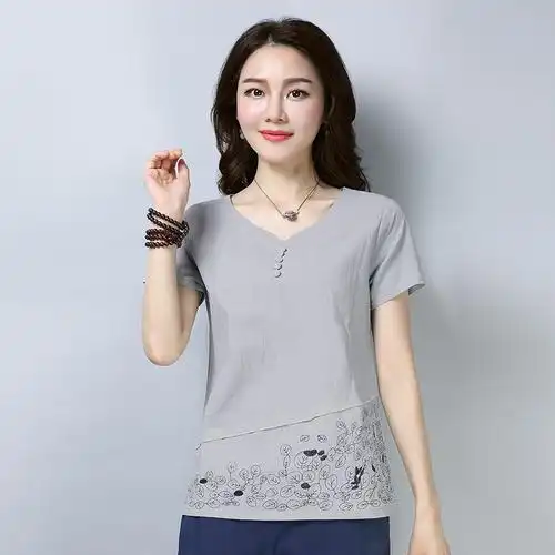 服饰内衣>女装>女士t恤>恒源祥>恒源祥棉麻t恤女2024夏季民族风新款