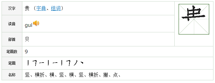 贵怎么读_贵组词_贵的解释_读音_笔顺_拼音_笔画_繁体字