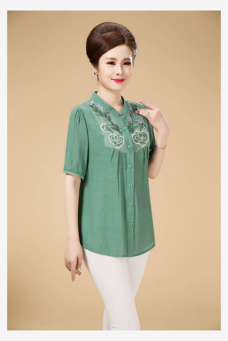 中老年女装妈妈春秋装2022新款洋气刺绣大码棉麻衬衫女长袖薄上衣