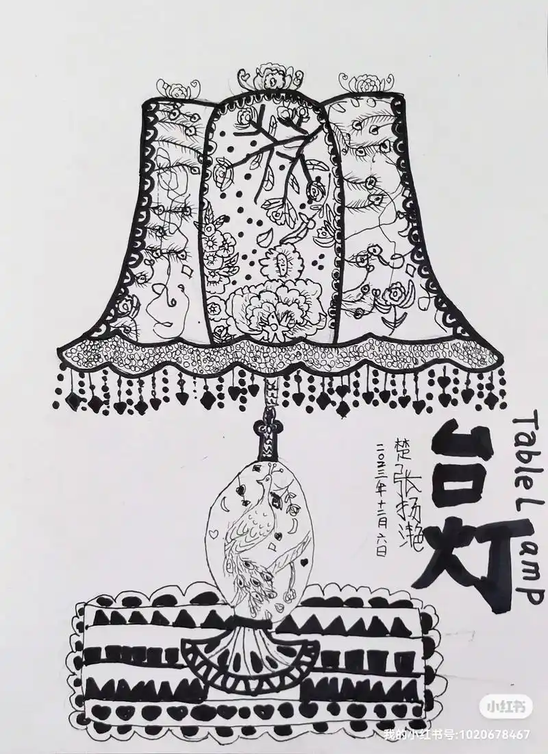 7 《线描台灯》#画画 #儿童画 #一起学画画 #线描 课 - 抖音