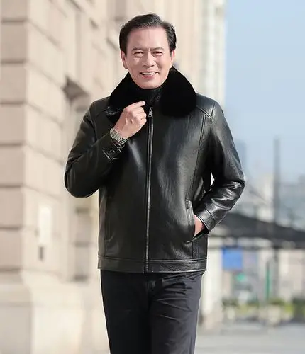 洋湖轩榭 2020冬季新款皮衣男士上衣中年休闲翻领皮夹克加绒外套a