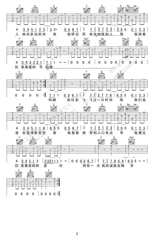 遇见吉他谱 孙燕姿 c调男生版 高清弹唱图片谱2